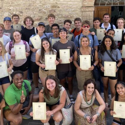 Students improve linguistic proficiency by bringing to completion or revising their understanding of grammatical structure and syntax. Alongside this, the student is introduced into the world of Italian civilization through the use of authentic material.